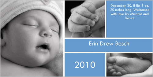 birth announcements. They shipped them to me really fast and I was very pleased with the way they turned out. I love the glossy look!